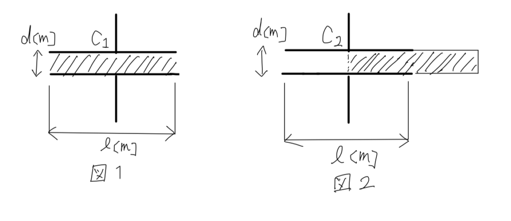 ただし、l >> d であり、コンデンサの端効果は無視できるものとする。
