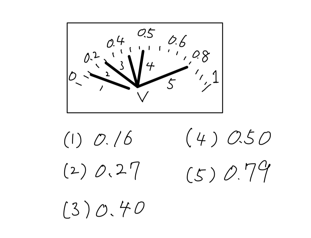 (※選択肢の図が省略されているため、選択肢の数値自体を出力します。ここでは、最も近い指示値が0.8Vになることを考慮し、その場合の選択肢の番号を(X)として示します。)